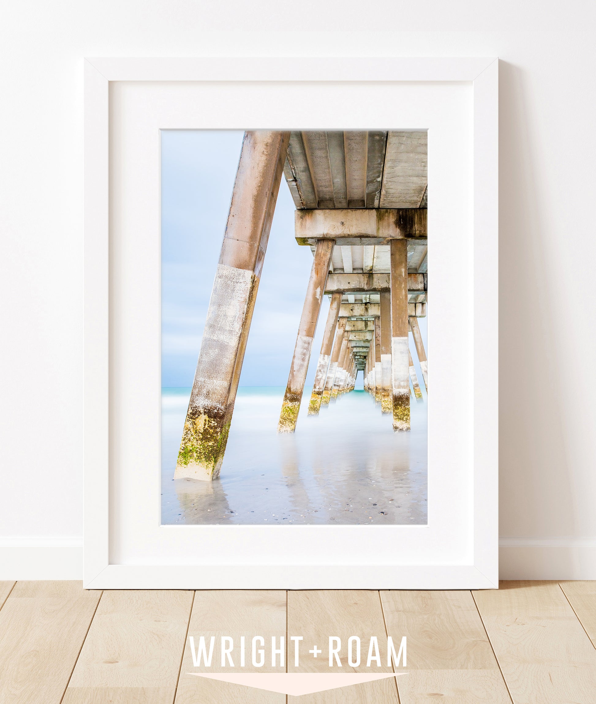 Archival, Fine Art Beach Wall Art featuring Johnny Mercer Pier on an icy blue day, right before a summer storm at Wrightsville Beach.
